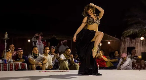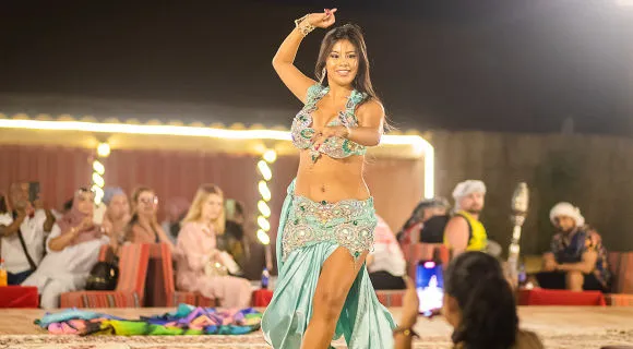As the evening unfolds, enjoy a lavish BBQ dinner under the stars featuring a variety of Middle Eastern delicacies. Be entertained with live performances including Tanura dance, fire shows, and belly dancing, providing the perfect end to an unforgettable desert adventure.