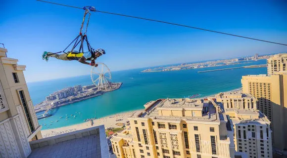 Once scanned, enjoy your thrilling zipline adventure across Dubai Marina!